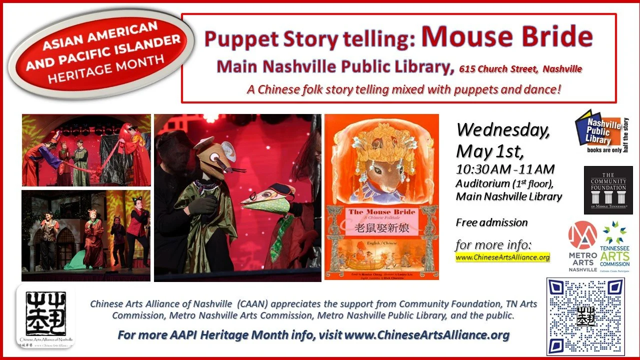 “AAPI Heritage Month in May '' project is supported by the TN Arts Commission, the Community Foundation, Metro Nashville Arts Commission, and the public. We also appreciate CAAN’s project partner, Metro Nashville Public Library, for this presentation.