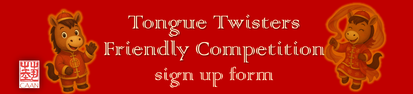Click the "Sign Up" here to let CAAN knows that you are participating the fun Chinese Tongue Twister Friendly Competition. Happy Lunar New Year of the HORSE!