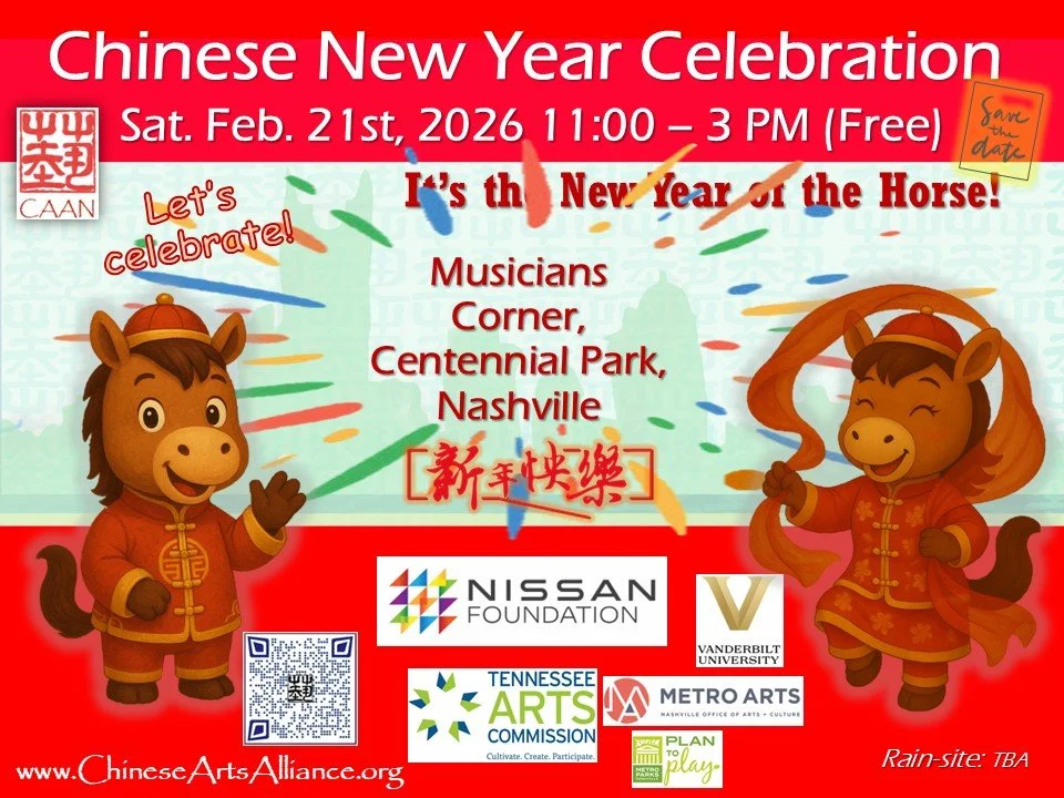 Chinese Arts Alliance of Nashville (CAAN) is grateful for the grant support from TN Arts Commission, Nissan Foundation, Vanderbilt University Community Impact Fund, Caterpillar Financial, Metro Nashville Arts Commission, the public and you!